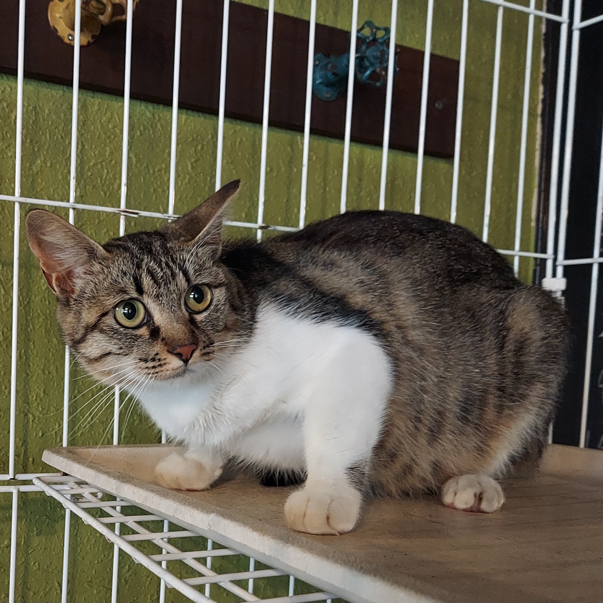 ケージの中でイエネコ修行です。