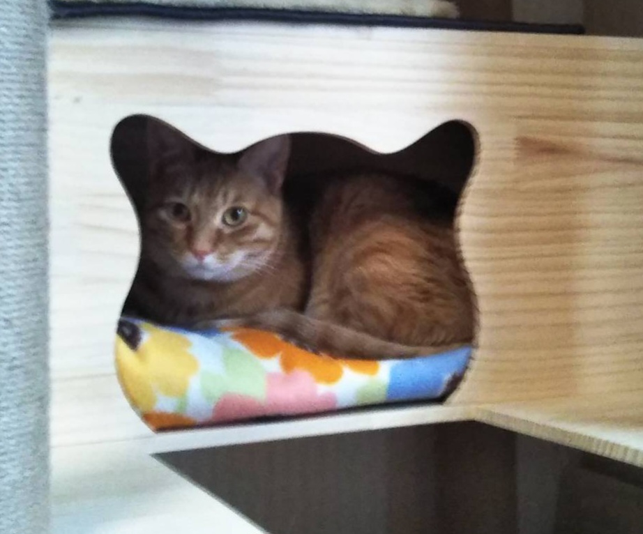 ロフトベッドを向こうの家から運んで組み立て、色々敷いたり猫ベッドを置いたり、下にも敷物など至れり尽くせりにしたつもりです。