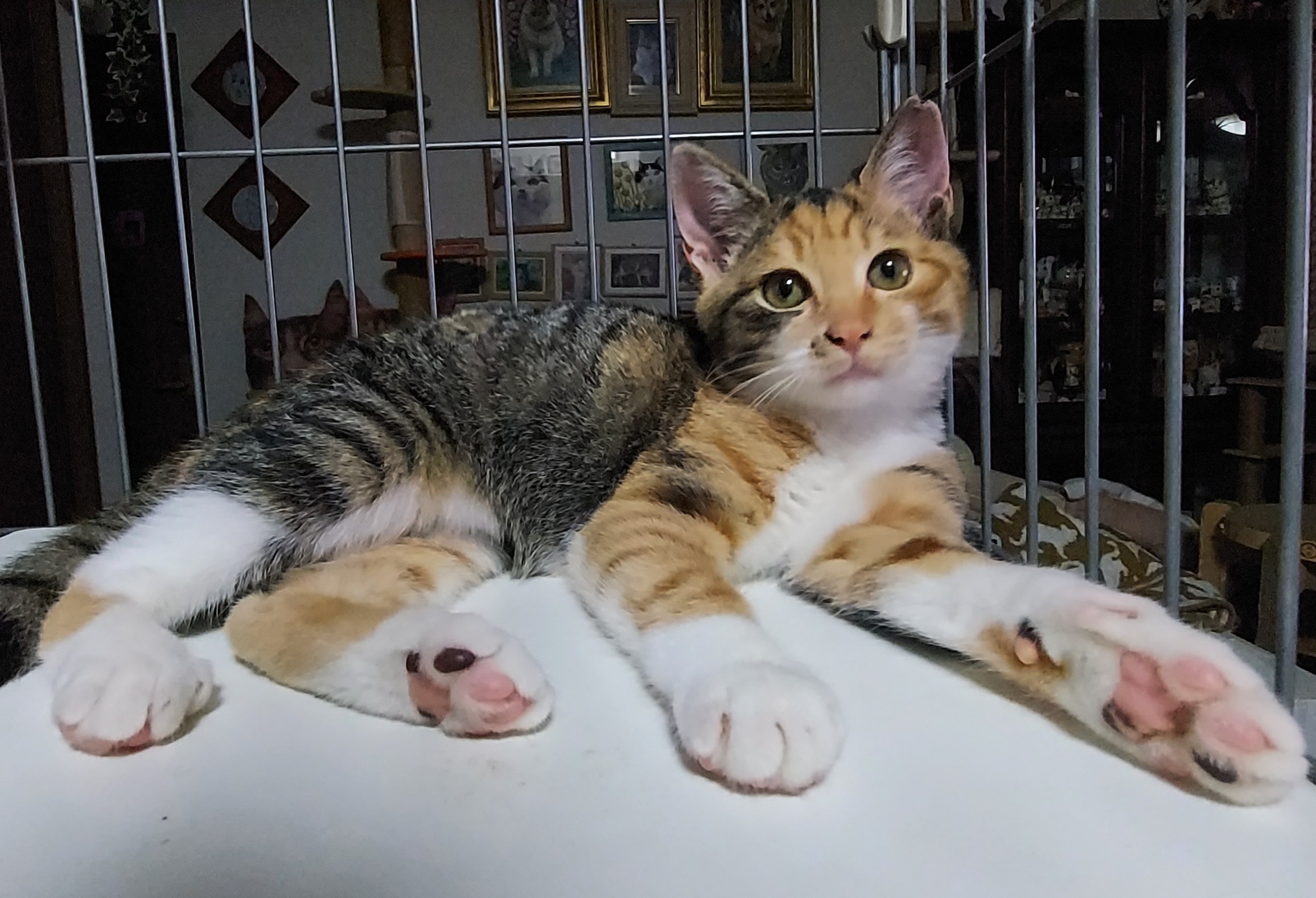 最近はケージの中で逃げ回らなくなり、こんな格好で穏やかに寛いでいたりします