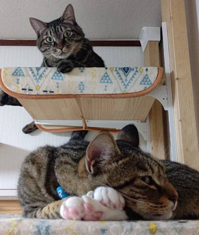 あずきちゃんちに保護猫の新入り男子が迎えられ、威嚇からの仲良し?に発展中かな?