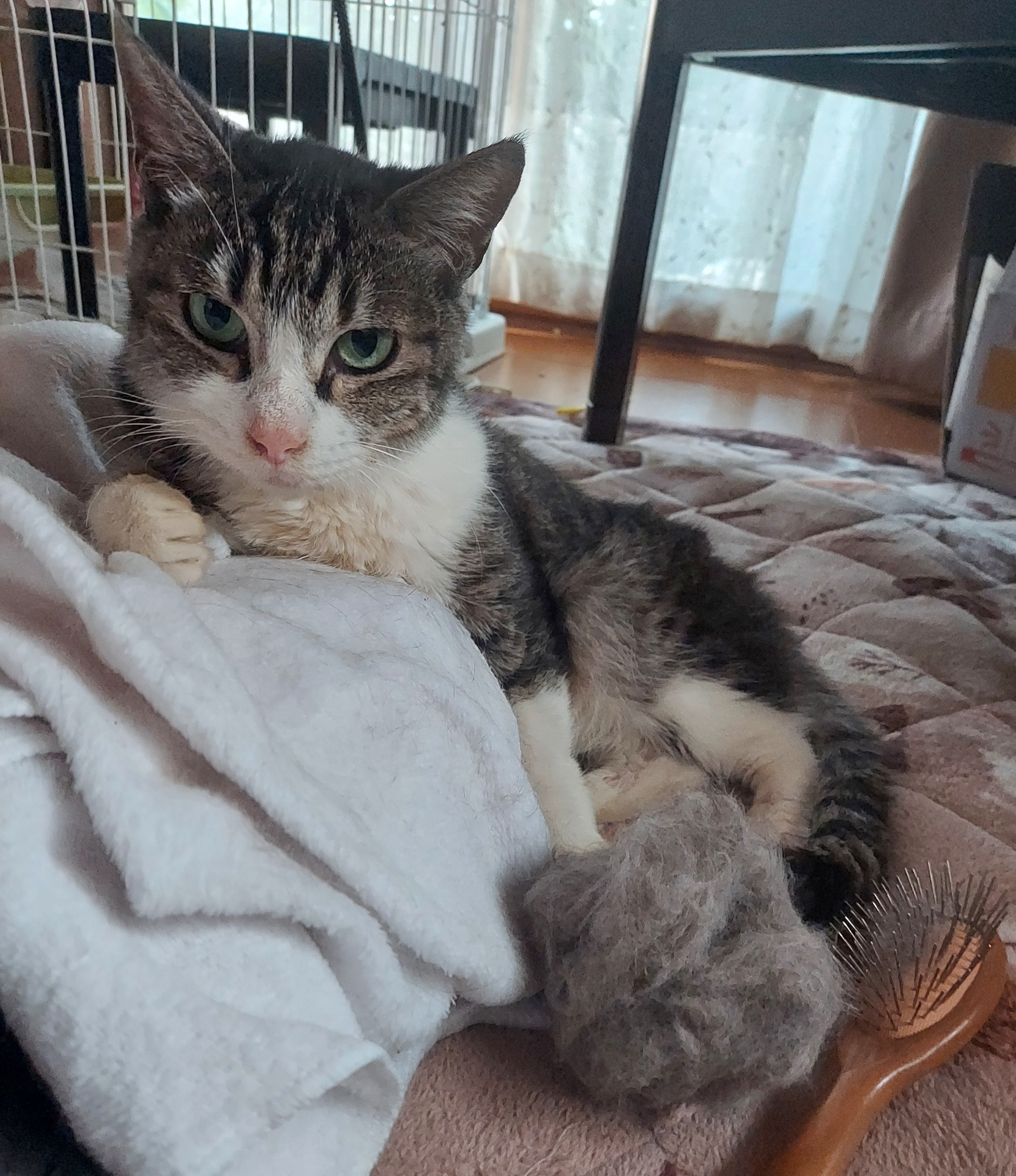 もえさん、相変わらずシャーしますが室内ケージ暮らしにも馴染んできました。