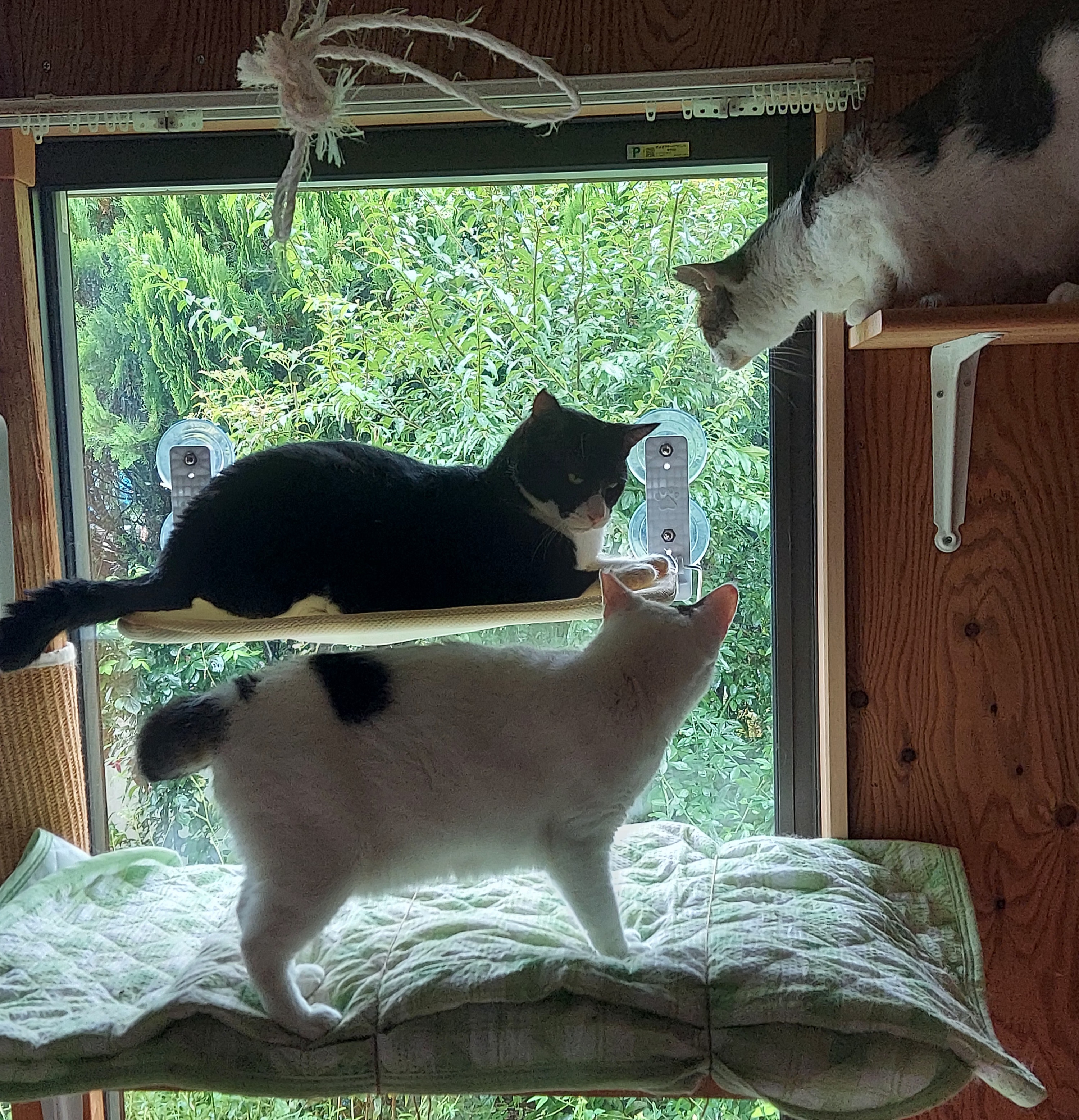 なる、琥珀、げんた、くんの縄張りのリビングの窓に取り付けましたが、何日経っても誰も近寄りません。